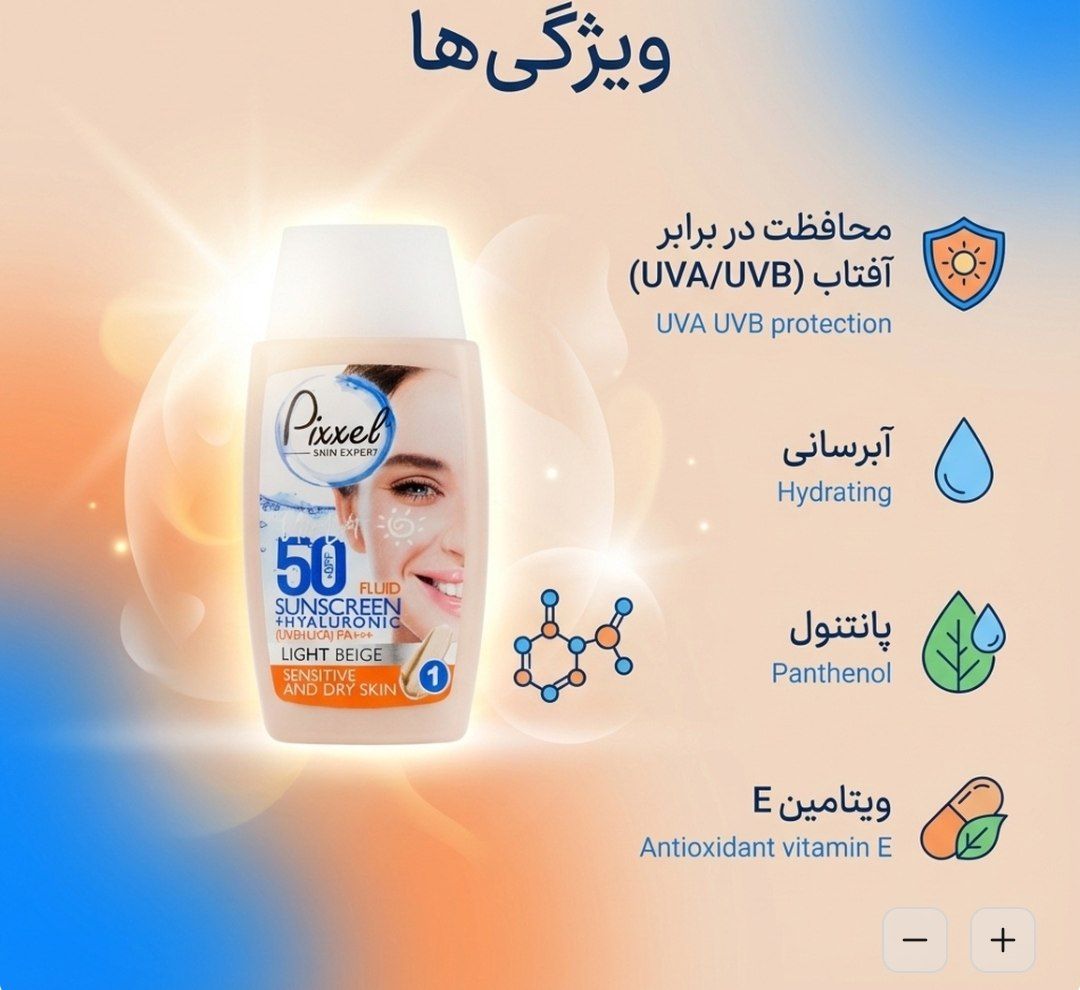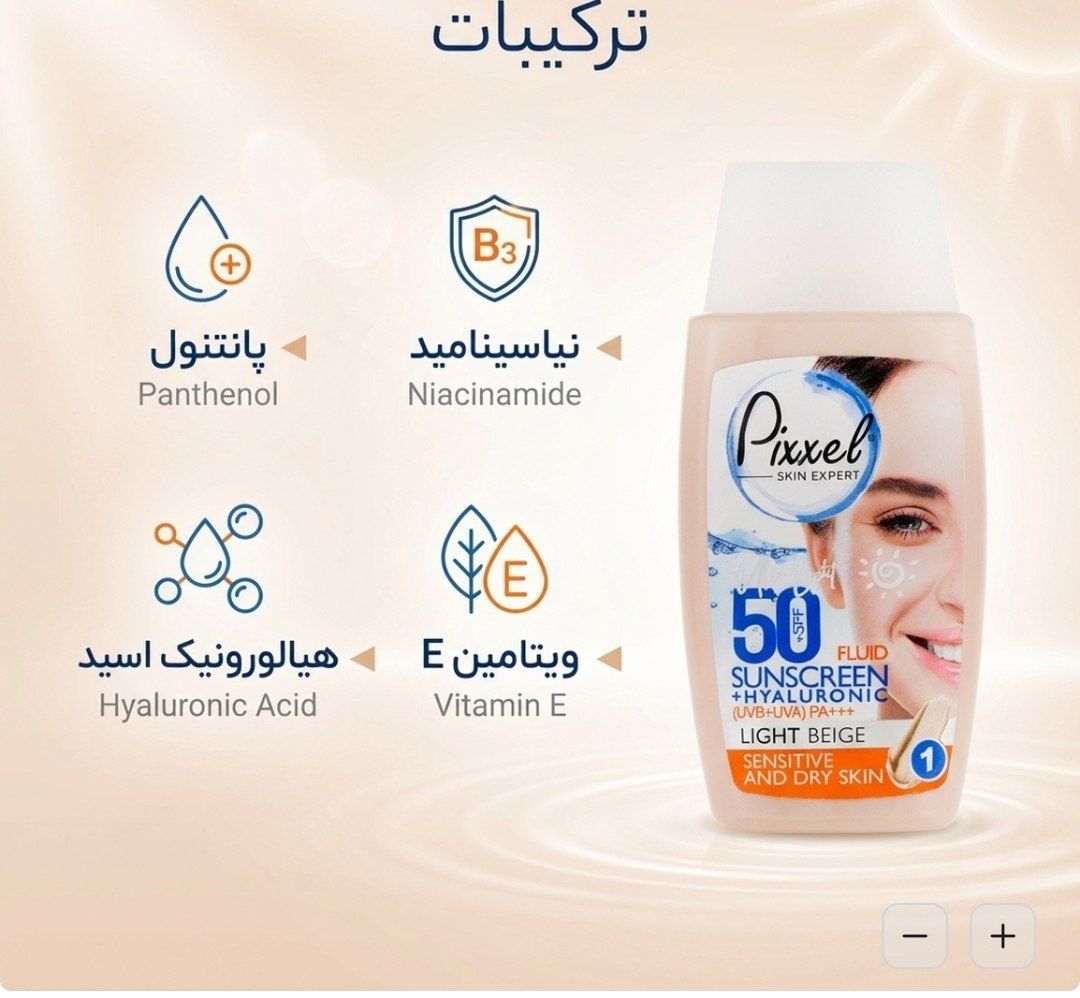 کرم ضد آفتاب رنگی Spf50 حجم 50 میل پیکسل مناسب برای پوستهای خشک، نرمال و حساس است.