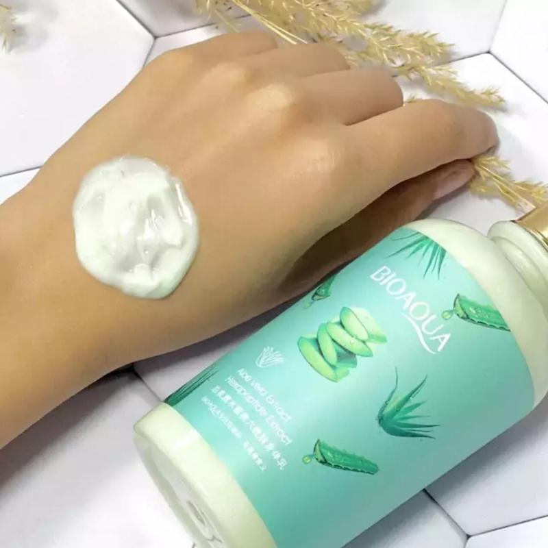 🧴لوسیون بدن آلوئه ورا بیواکوا Bioaqua حاوی عصاره آلوئه ورا و هگزاپپتید محصولی با رایحه دلپذیر تمیزی مرطوب کنندگی عمیقی داشته و آبرسان قوی پوست است.
